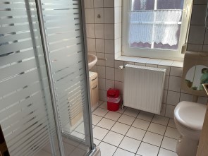 Tageslicht-Bad mit Dusche und WC.