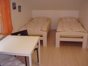 Ein Schlaf-/Kinderzimmer mit 2 Einzelbetten.